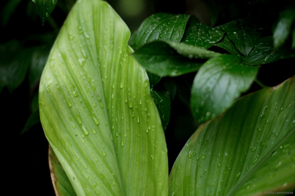 Tänä vuonna sateet ovat hellineet puutarhaa usein, mikä on tuntunut lottovoitolta menneiden vuosien kuivien ja kuumien kesien jälkeen. Lämpöinen kesäsade huuhtoo siitepölyjä pinnoilta helpottaen myös kasteluissa. Sademääriä on hyvä tarkkailla, sillä lisäkastelu on yleensä tarpeen.